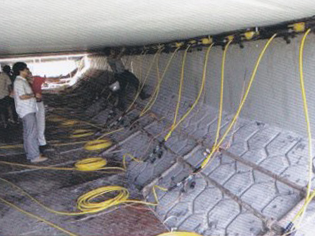 中小跨度橋梁因活載所占比例大,在使用過(guò)程中支座容易產(chǎn)生這種病害時(shí)。橋梁支座出現(xiàn)諸如滾動(dòng)面不平整。支點(diǎn)承壓不均勻、性能老化失效等缺陷時(shí),應(yīng)進(jìn)行調(diào)整和更換。調(diào)整時(shí)應(yīng)采用千斤頂把橋梁上部頂起,然后移動(dòng)調(diào)整支座的位置。更換連續(xù)梁一聯(lián)的邊制作時(shí),可由梁端挺起;當(dāng)更換中間支座是,應(yīng)有相鄰兩個(gè)支座同時(shí)起頂,并應(yīng)符合下列規(guī)定:
