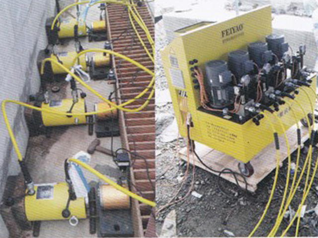 中小跨度橋梁因活載所占比例大,在使用過程中支座容易產(chǎn)生這種病害時。橋梁支座出現(xiàn)諸如滾動面不平整。支點承壓不均勻、性能老化失效等缺陷時,應進行調(diào)整和更換。調(diào)整時應采用千斤頂把橋梁上部頂起,然后移動調(diào)整支座的位置。更換連續(xù)梁一聯(lián)的邊制作時,可由梁端挺起;當更換中間支座是,應有相鄰兩個支座同時起頂,并應符合下列規(guī)定: