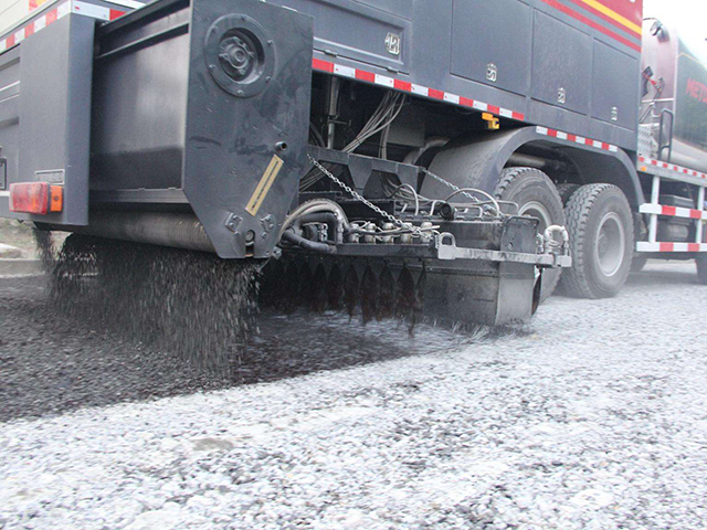 同步碎石封層用于下封層,施工后可有效防水,保護路基防止凍融破壞;次年攤鋪時上下層接合更好;可適當開放交通允許車輛碾壓,保證路基安全過冬。